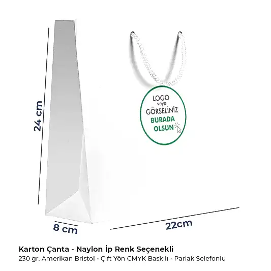 Karton çanta yapımı, profesyonel üretim teknikleriyle, kaliteli malzemeler kullanılarak yapılmalıdır. Üretimde en çok tercih edilen karton çeşidi olan amerikan bristol ile, dayanıklı ve estetik görünüm sunan karton çanta sipariş edebilirsiniz. 20 kg taşıma kapasiteli özel ölçülerde üretilen çantalar, dayanıklılığıyla uzun süre kullanım sağlar.Karton çantalar; sadece ürünleri taşımak için değil, aynı zamanda algıyı yükseltecek bir marka takviyesi olarak tasarlanır. Bu nedenle çantanın her detayı önemlidir: