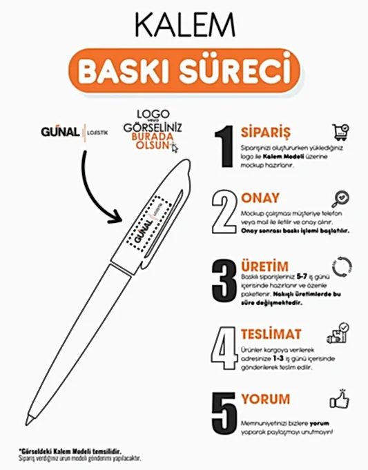 Logo baskılı ürünleri üretim süresi genellikle 4-5 iş günüdür. Kargo süresi bulunduğunuz konuma göre değişiklik gösterebilir. Siparişiniz kargoya verildiğinde size bir takip numarası gönderilecektir.