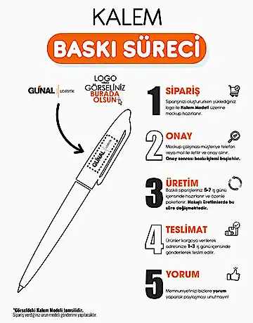 Logo baskılı ürünleri üretim süresi genellikle 4-5 iş günüdür. Kargo süresi bulunduğunuz konuma göre değişiklik gösterebilir. Siparişiniz kargoya verildiğinde size bir takip numarası gönderilecektir.