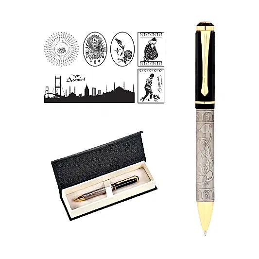 - Kabartma Figürlü Metal Tükenmez Kalem Seti