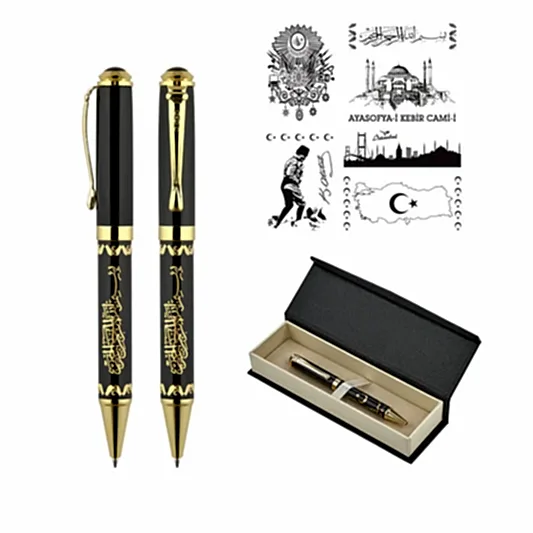 - Kabartma Figürlü Metal Tükenmez Kalem Seti