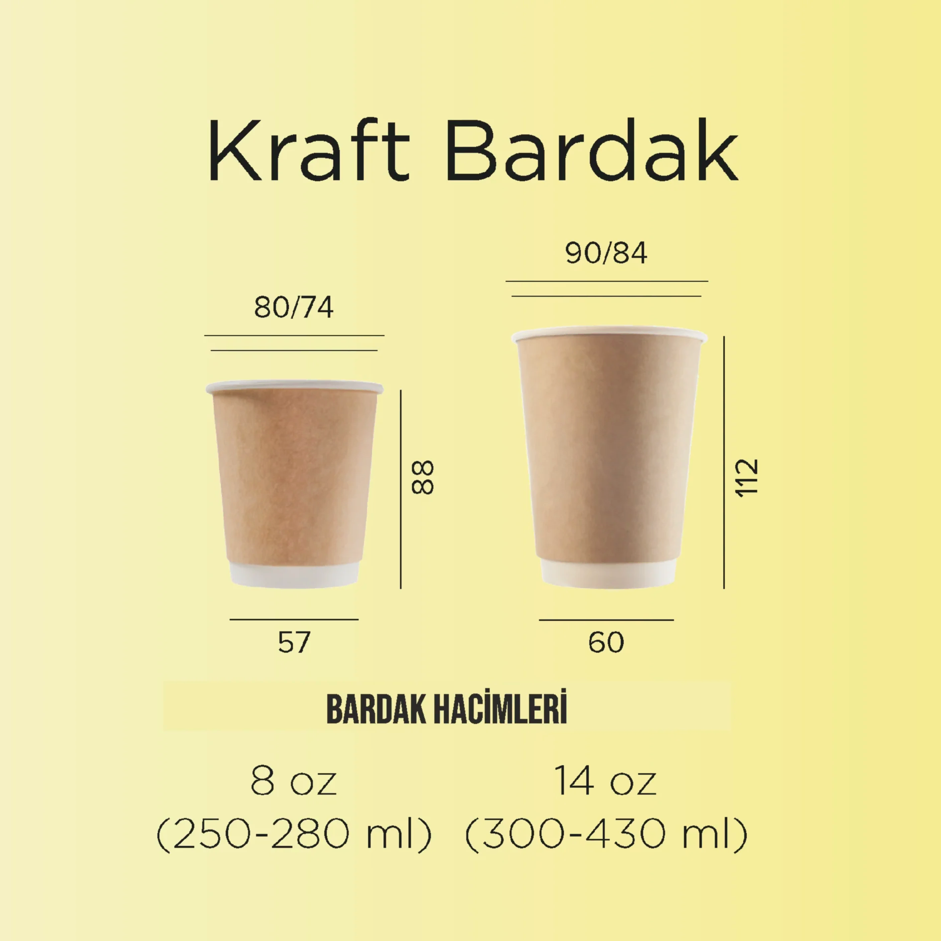 Karton bardak ölçüleri: